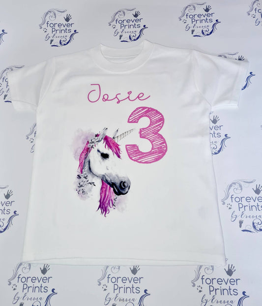 Girls unicorn birthday t-shirt, personalised birthday t-shirt