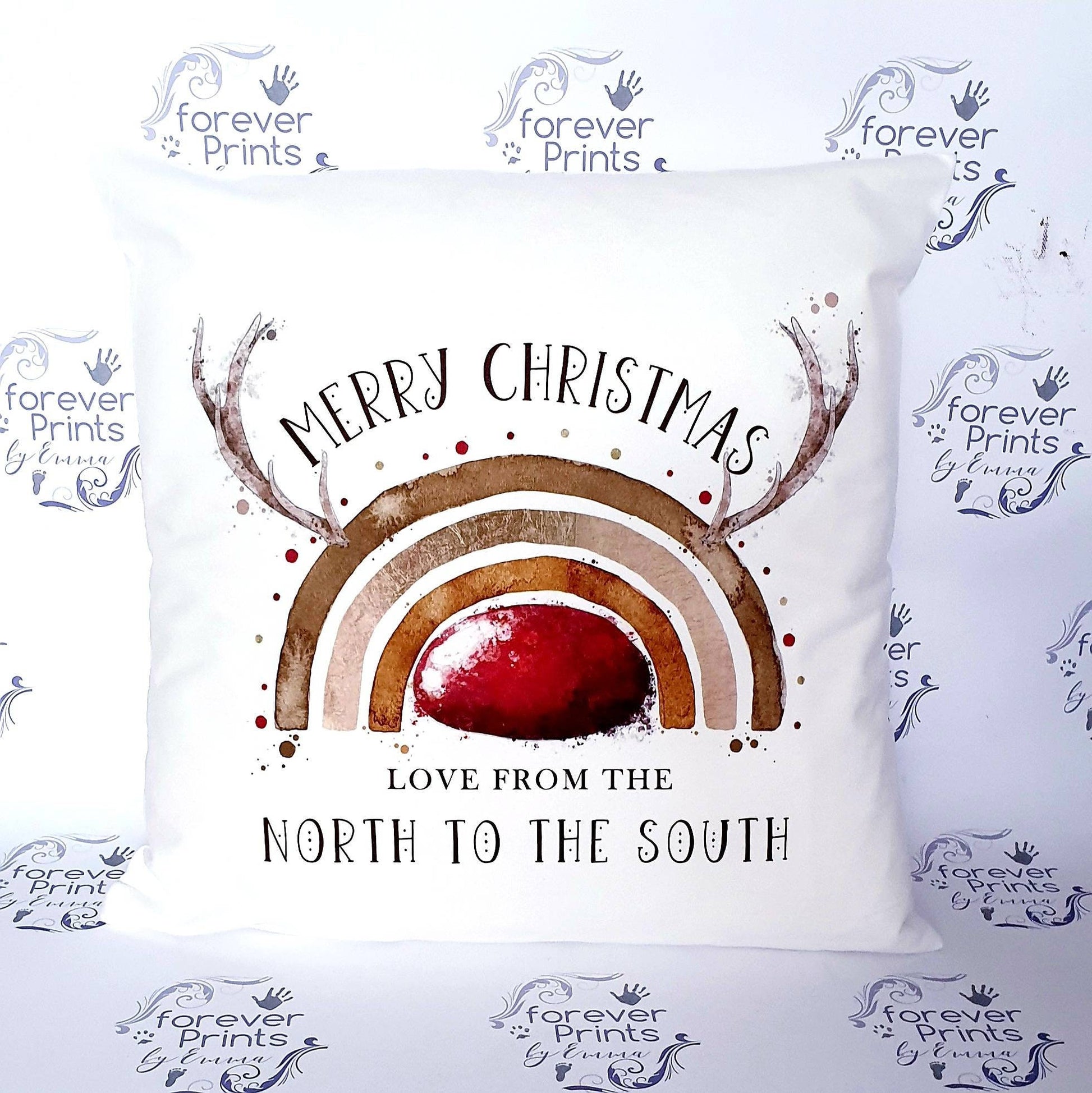 Christmas Reindeer Rainbow Pillow, Festive Cushion
