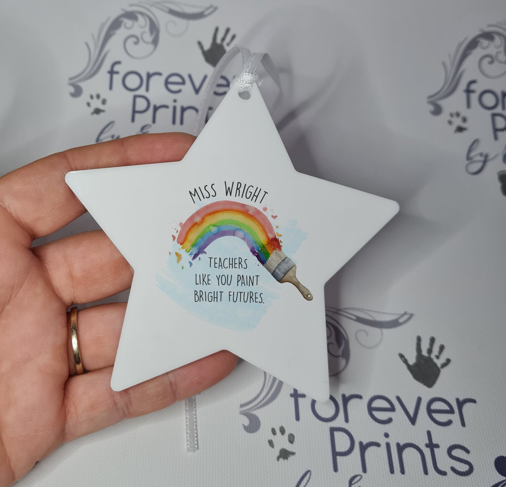 Teacher gift, thank you teacher hanging decoration, painted rainbow.