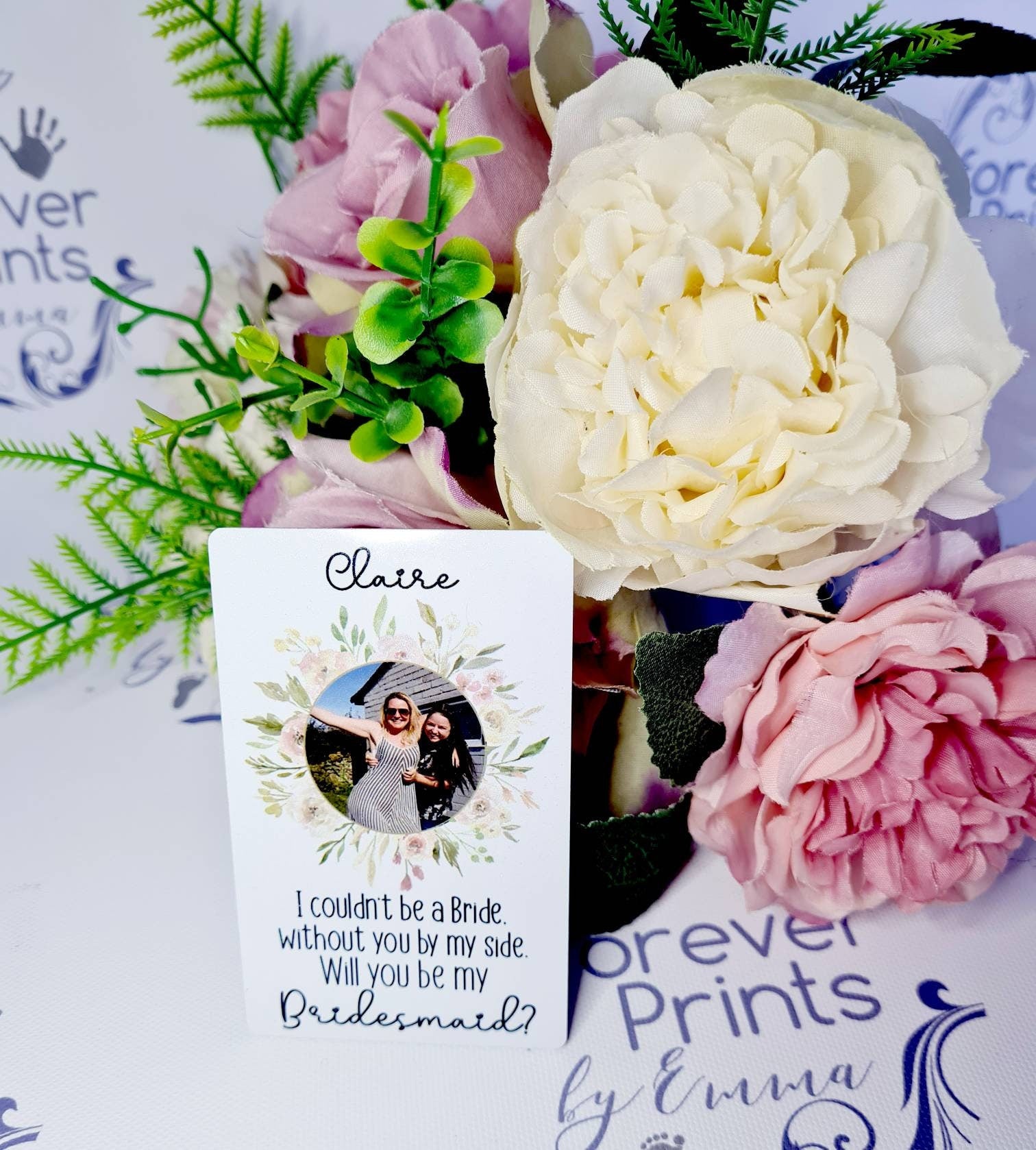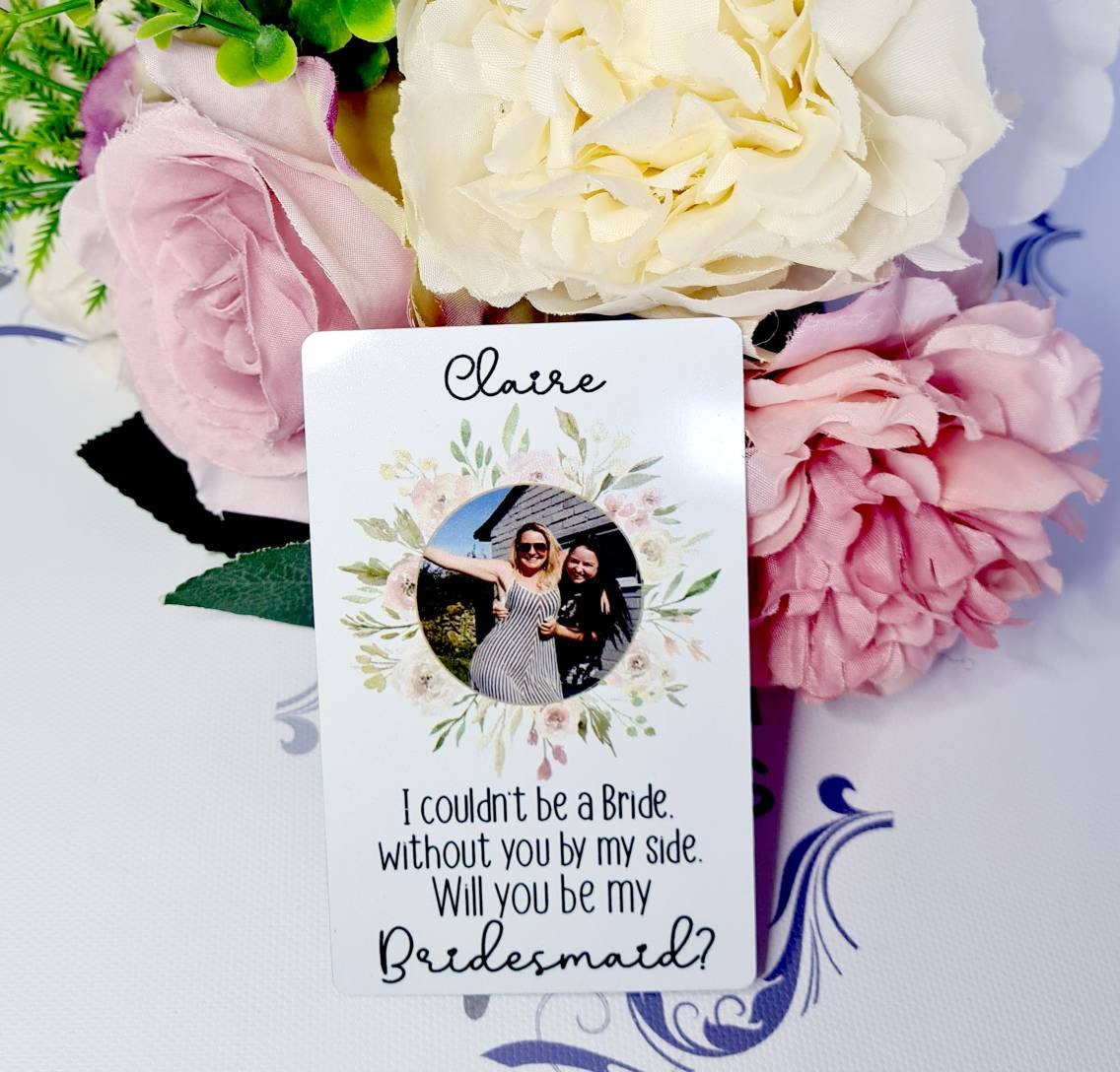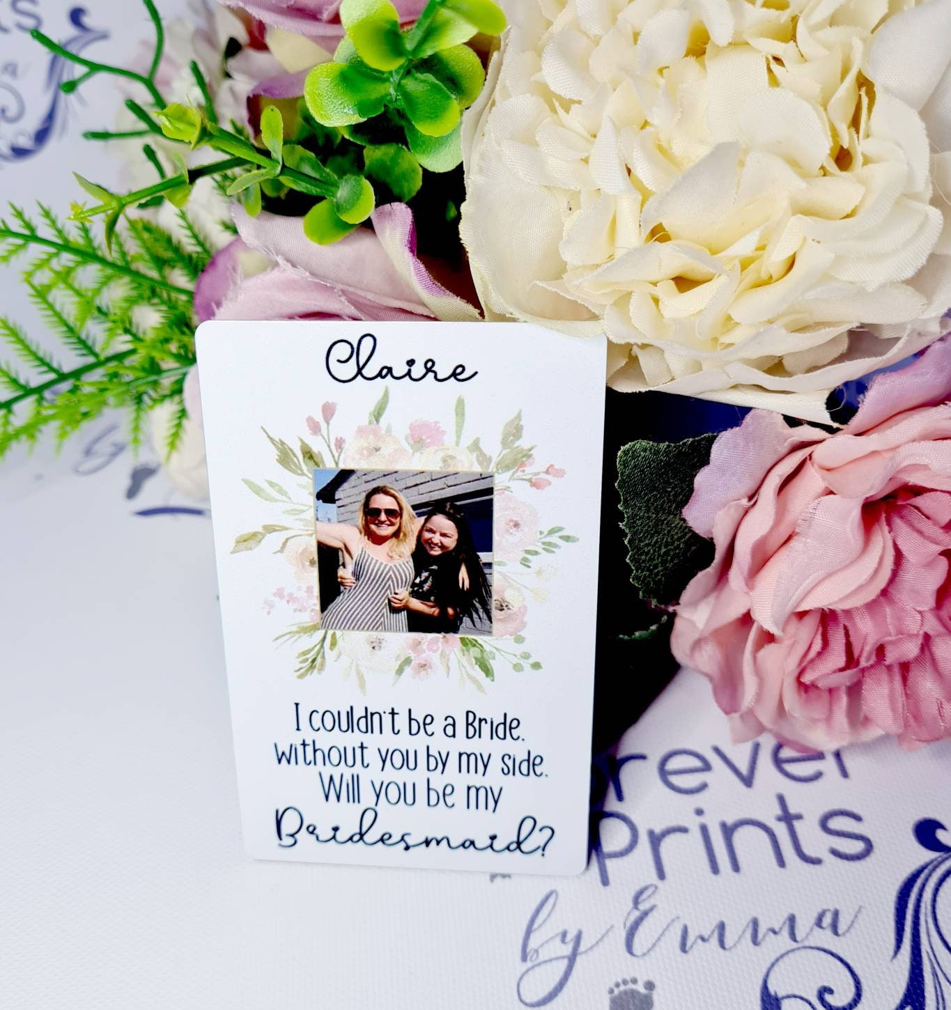 Will you be my bridesmaid gift, Photo wallet card, personalised printed wallet card.